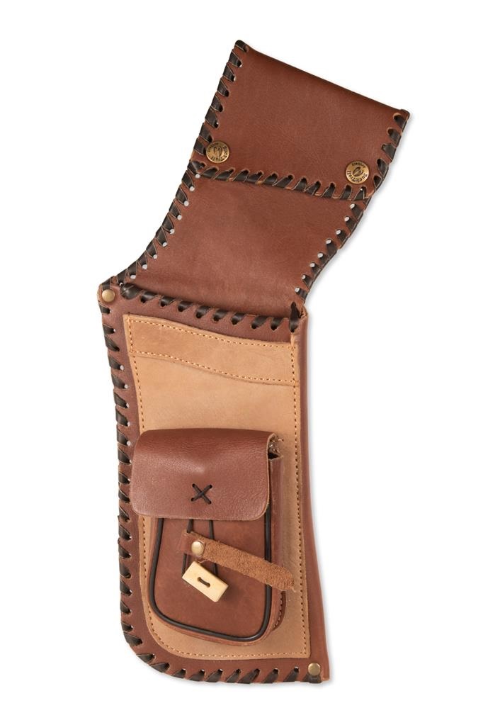 Polní kožený toulec z kvalitní pevné kůže. Boční kapsa, vhodný na šípy do luků i pro kuše. Pro praváky.